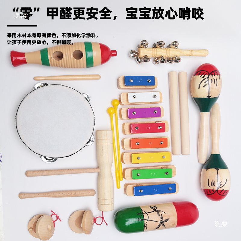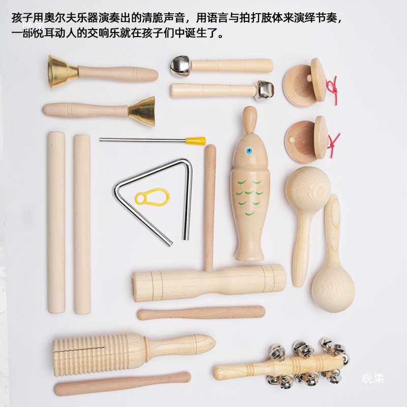 | nameOriginal | Orff musical instrument log combination suit kindergarten early education children Enlightenment music play teaching aids rattle drum sand hammer |