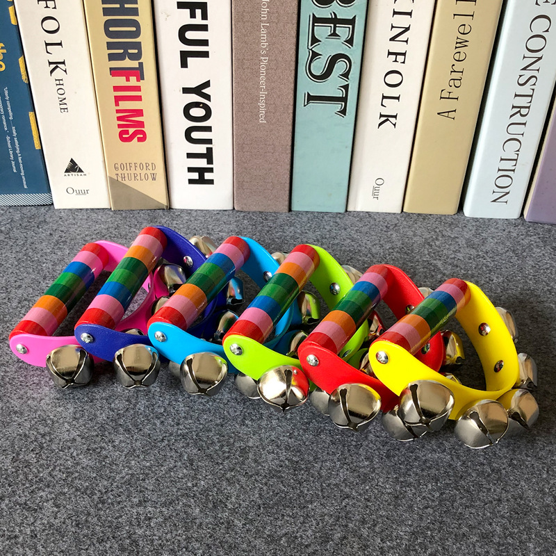 Orff Musical Instruments Wooden Infant Children's Educational Kindergarten Early Childhood Toys Colorful Semicircle Hand Rattle Skin Five Bells