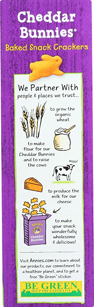 Introducing Annie’s Homegrown Organic Cheddar Bunnies, the perfect snack for those who love to indulge in delicious and healthy treats. Made with the finest organic ingredients, these baked snack crackers are a guilt-free way to satisfy your cravings. Each 7.5 oz (213 g) pack is filled with bite-sized cheddar bunnies that are sure to delight your taste buds. These crackers are made with real cheddar cheese and are free from artificial flavors, synthetic colors, and preservatives. They are also non-GMO and certified organic, making them a great choice for those who are health-conscious and environmentally aware. Whether you’re looking for a quick snack on the go or a tasty addition to your lunchbox, Annie’s Homegrown Organic Cheddar Bunnies are the perfect choice.