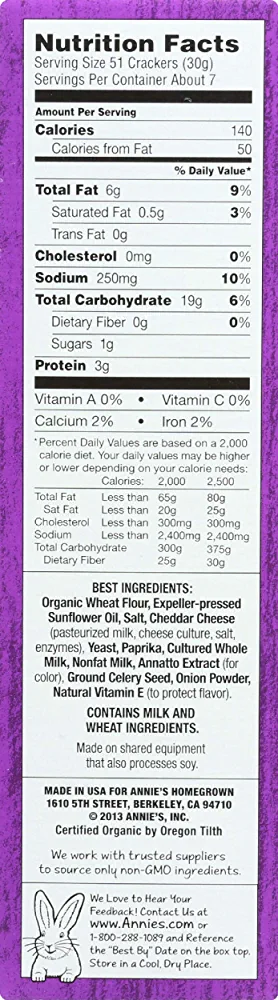 | nameOriginal | Annie's Homegrown, Organic Cheddar Bunnies, Baked Snack Crackers, 7.5 oz (213 g) |