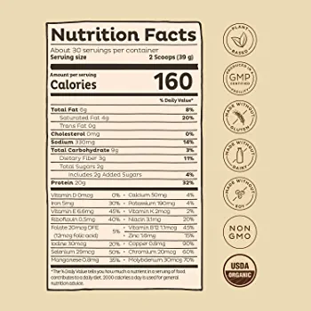 All of the ingredients in this protein powder are responsibly sourced and certified organic. It’s also free of gluten, dairy, soy, hormones, artificial sweeteners, colors, and GMOs, making it a great choice for those with dietary restrictions.