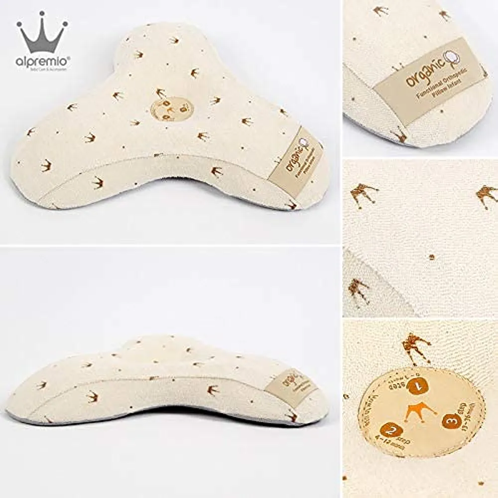 Alpremio 3D Baby Pillow Natural Organic Cotton Crown Pattern Printed Pillow, Maintain Correct Sleeping Posture For Baby