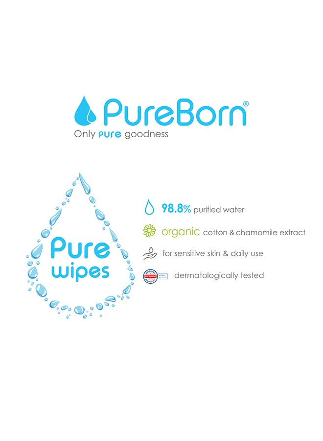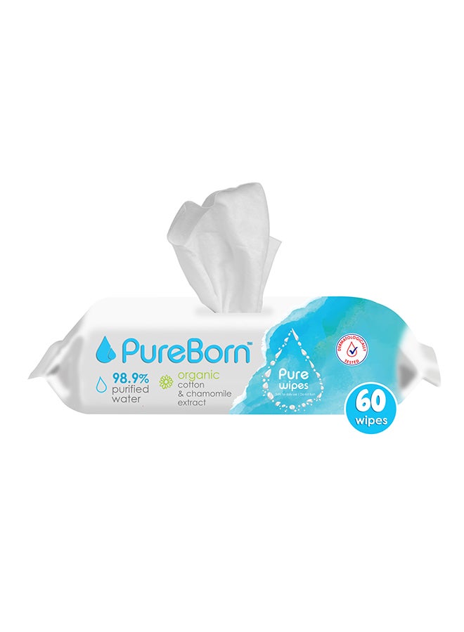 Pure Baby Wet Wipes, 60 Count – Organic Cotton and Chamomile Extract, Dermatologically Tested, 98.8% Purified Water