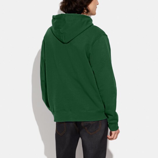This product description is for a men’s sized garment from the Coach Forever Collection. It is made from 100% organic cotton and features a kangaroo pocket. The length of the garment is 27 1/4 inches. It can be machine washed for easy care. The model Steven is 6’2″ (188cm) and wears a size M, while the model Grace is 5’10” (178cm) with a chest measurement of 31″ (79cm), waist measurement of 24″ (61cm), hip measurement of 35″ (89cm), and wears a size S.