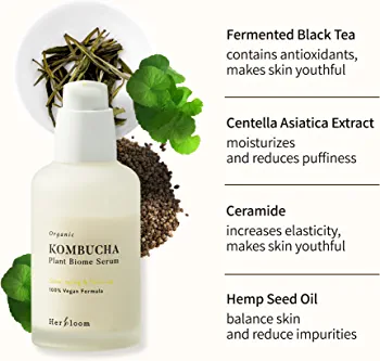 | descriptionOriginal | 100% Natural Ingredients and Korean Organic Kombucha – Hydrating serum that is formulated with organically grown fermented green tea and 70.5% Kombucha extract |