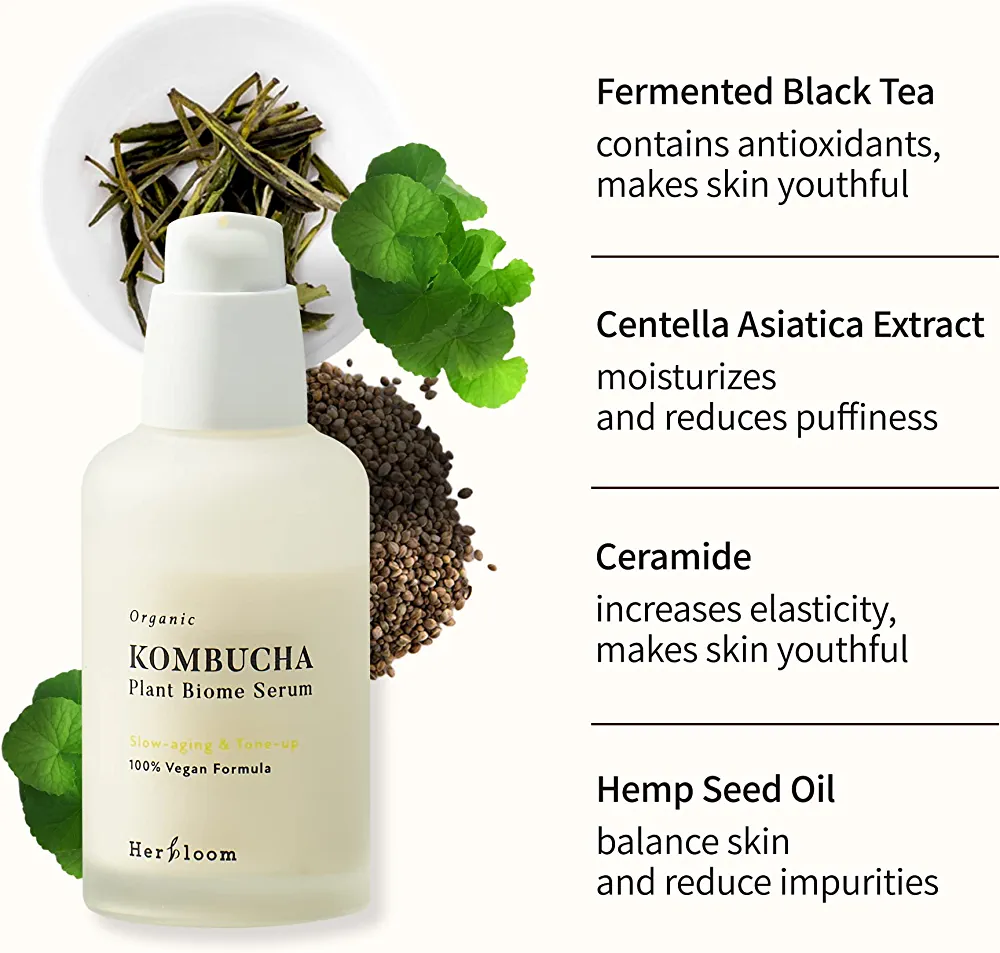 | nameOriginal | Herbloom Organic Kombucha Biome Serum – Deep Moisturizing and Hydrating Serum, Ceramide and Triple Hyaluronic Acid, Non Sticky, Korean Essence, Vegan – 1.69 fl.oz. |