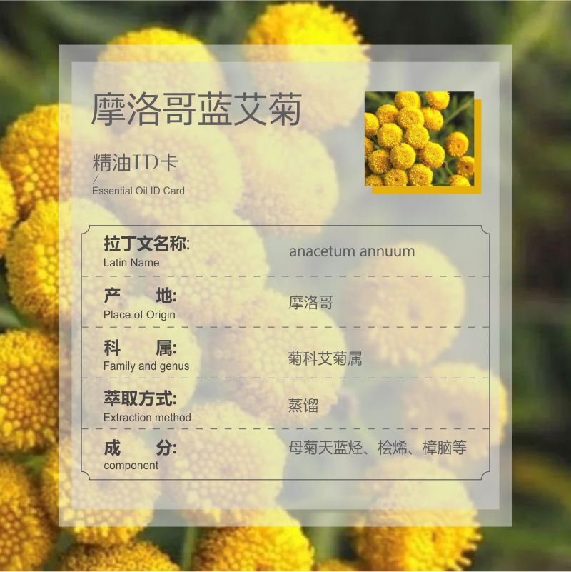 | nameOriginal | Organic Morocco blue chrysanthemum essential oil Morocco origin single essential oil aromatherapy essential oil raw materials wholesale |