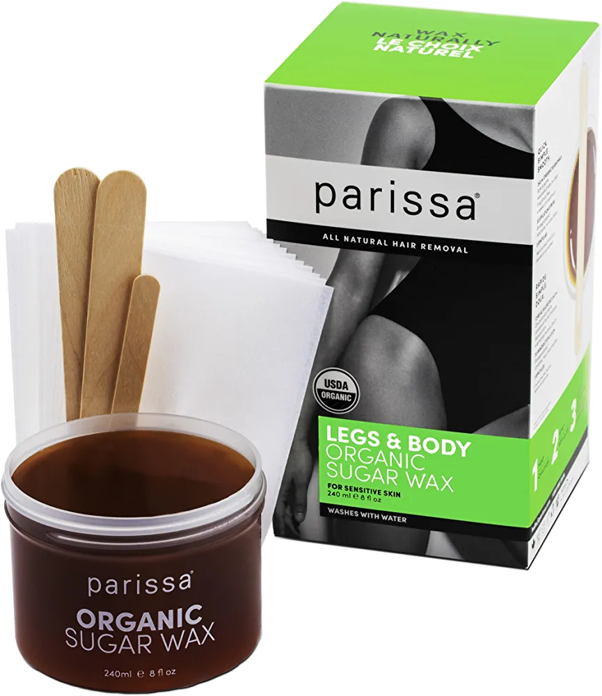 | nameOriginal | Parissa Legs & Body Organic Sugar Wax for Sensitive Skin, 100% Natural, Gentle & Washable Formula at Home Waxing Kit, Green, 8 Fl Oz |