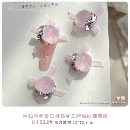 New Organsha Girls’ Pink Jade Translucent Nail Art Jewelry