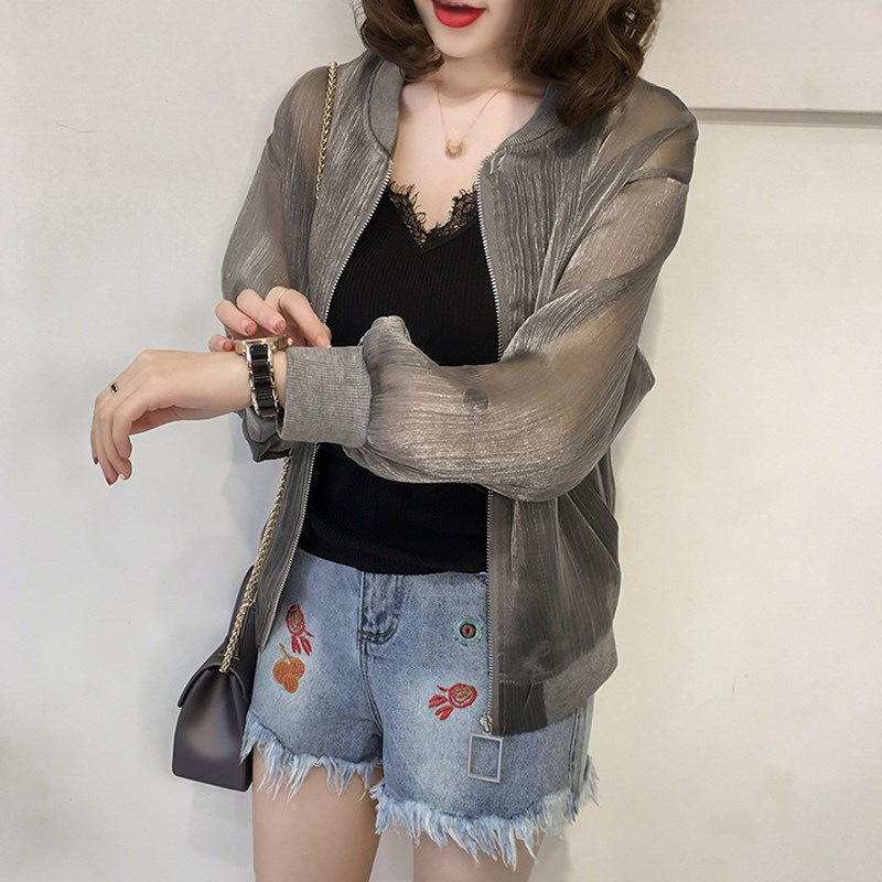 | nameOriginal | Organza Sunscreen Clothing Women's Summer Large Size Cardigan Long Sleeve Spring and Autumn Short Bright Silk Thin Small Shirt Coat Baseball Suit |