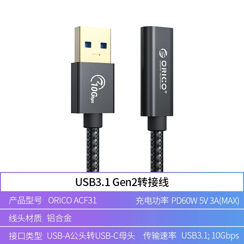 ORICO USB3.1Gen2 adapter cable Type-C to USB full-featured male-to-female OTG data cable extension cable to connect hard drive HUB suitable for computers, mobile phones and tablets