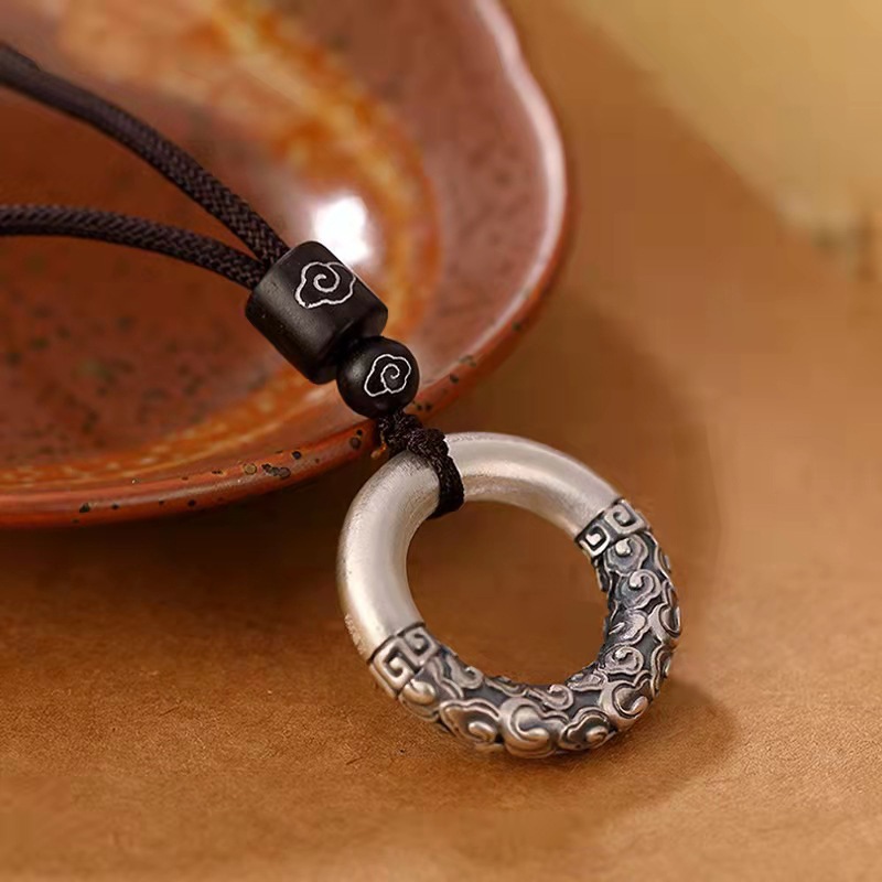 | nameOriginal | Original 999 Sterling Silver Xiangyun Gold Hoop Pendant Men's Foot Silver Retro Safe Buckle Pendant Women's Distinctive Distressed Necklace |