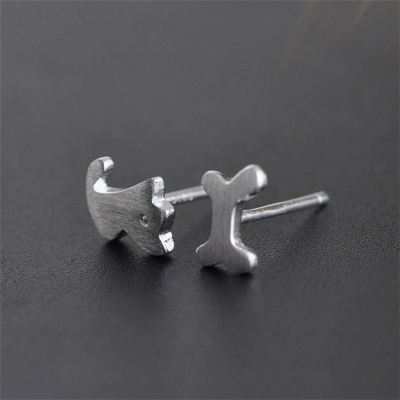 Original simplicity S925 sterling silver ear jewelry cute puppy bone asymmetrical earrings female earrings female ears are versatile