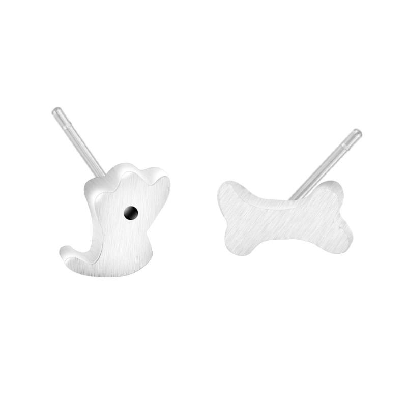 Original and simple S925 sterling silver ear jewelry, cute puppy bone asymmetric earrings, women's earrings, versatile and versatile