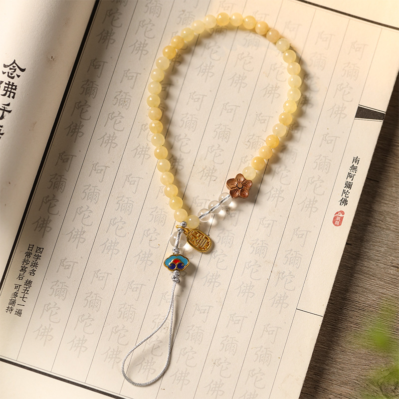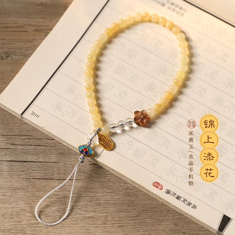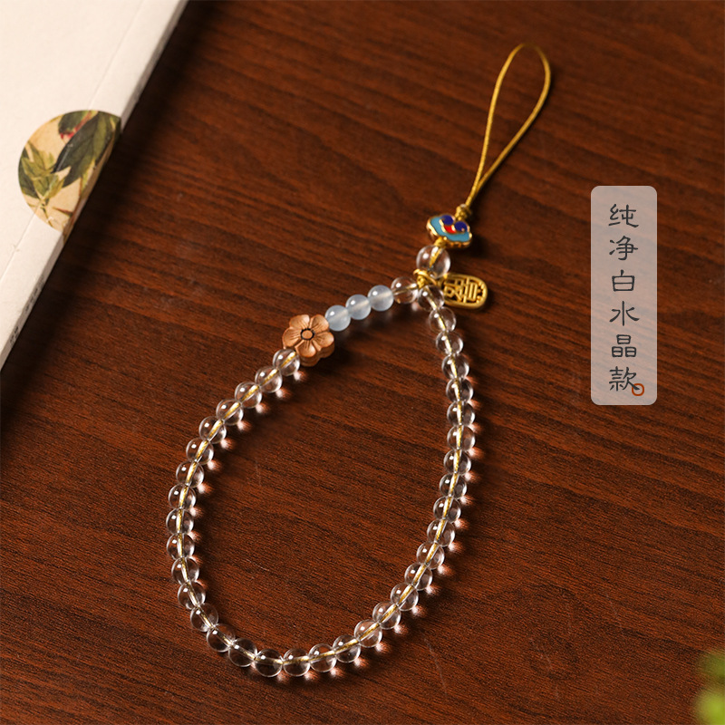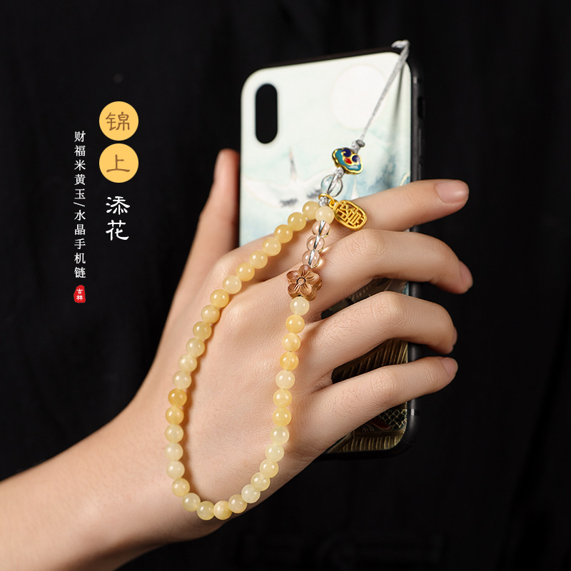 | nameOriginal | Original artistic exquisite fresh Women's mobile phone lanyard short wrist lanyard beige Jade white crystal beads small pendant |