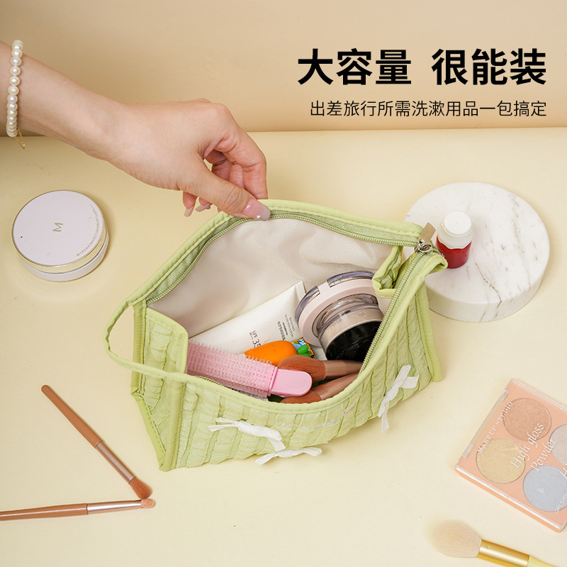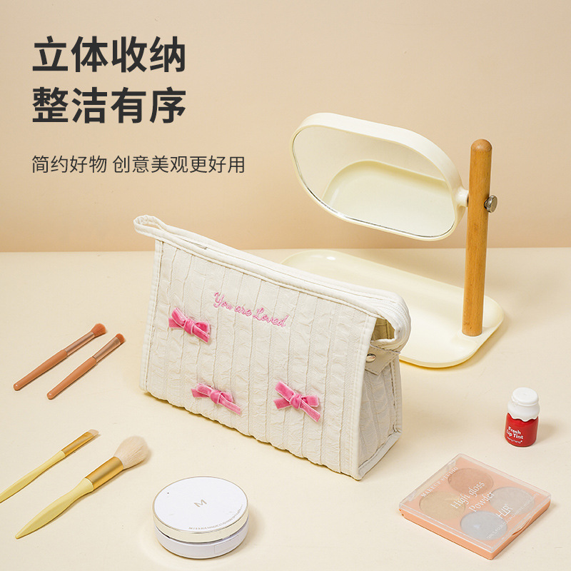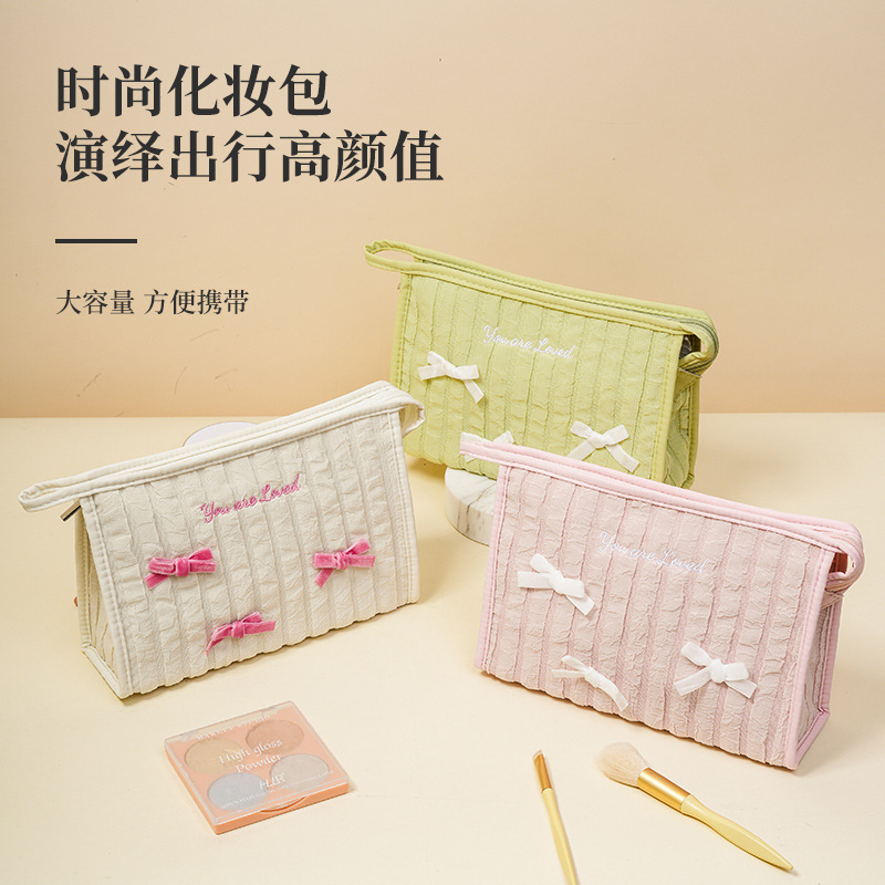 | nameOriginal | Original Bow Portable Cosmetic Bag Large Capacity Portable Handbag Small Fresh Vertical Stripe Storage Bag Wash Bag |