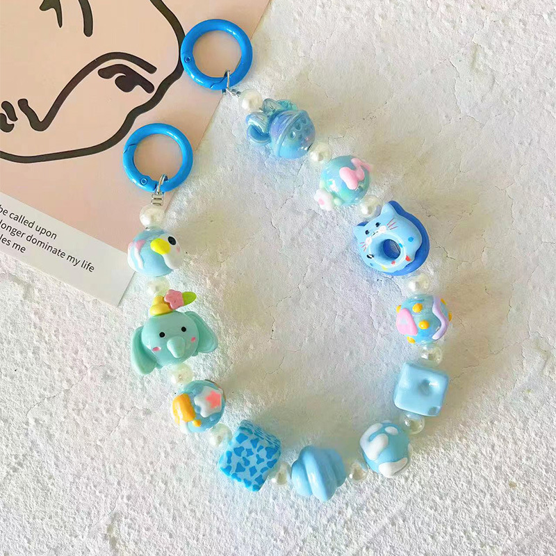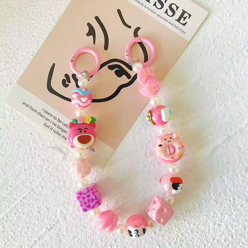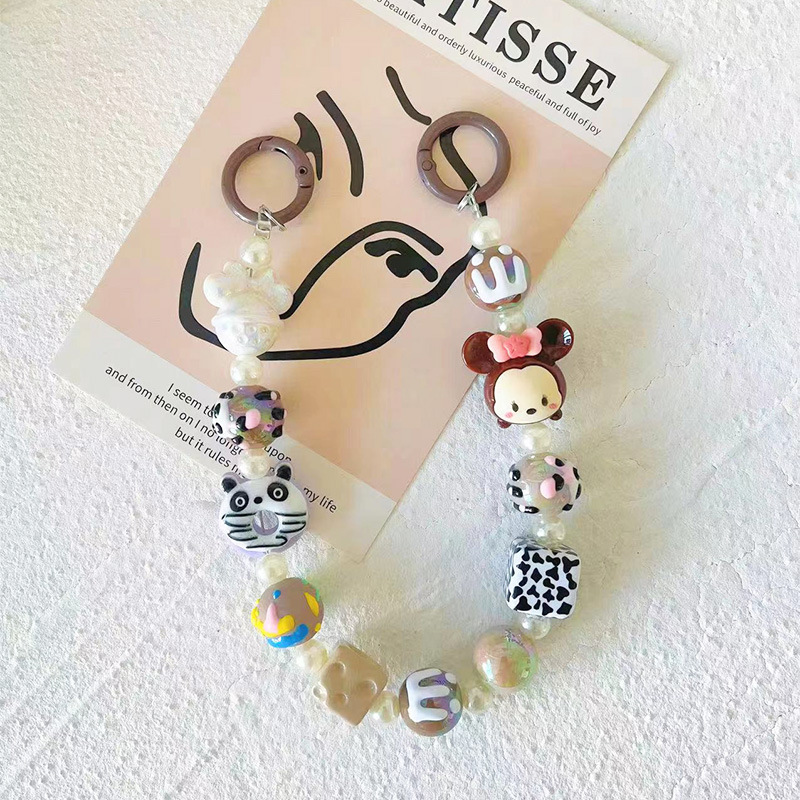 Original Cartoon Hand-painted Beads Beaded Mobile Phone Chain Blind Box Mobile Phone Bag Keychain Pendant Live Cute Grain Hanging Chain
