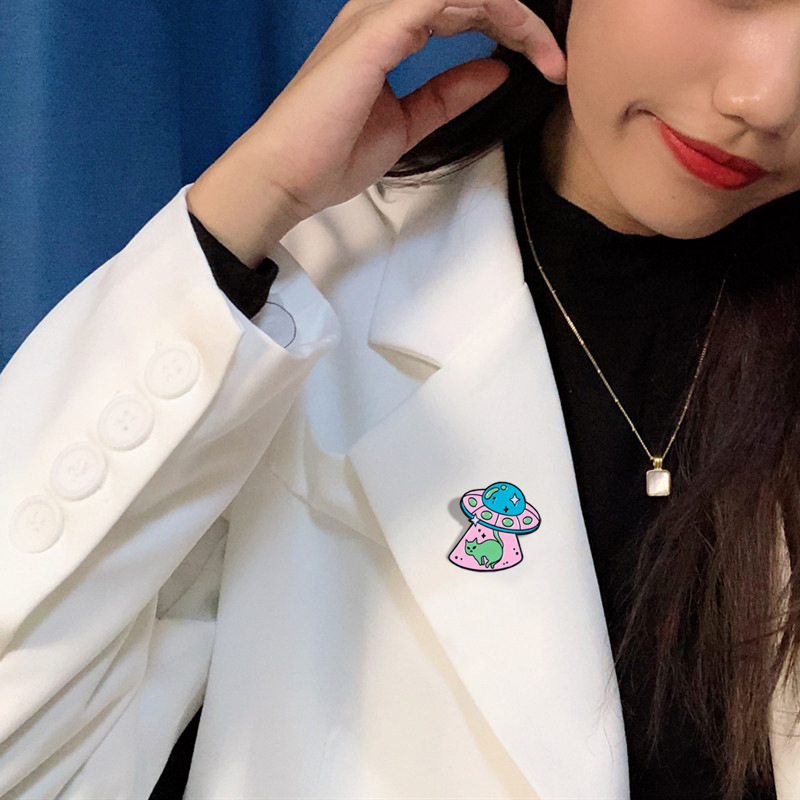 Original cartoon space cat alien cute clothing creative all-Match Badge metal dripping oil Thorn pin brooch