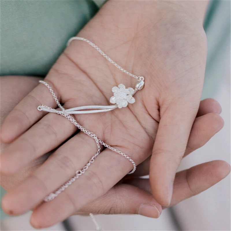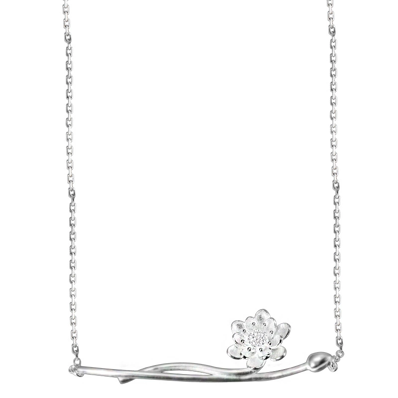 Original Chinese style accessories S925 sterling silver simple literary and versatile creative lotus clavicle necklace women's short pendant