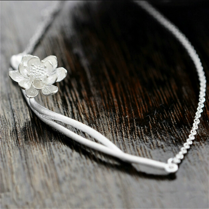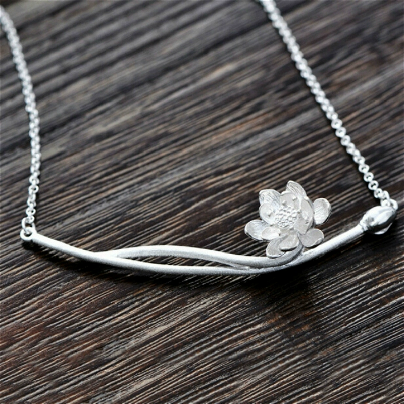 Original Chinese style accessories S925 sterling silver simple literary and versatile creative lotus clavicle necklace women's short pendant