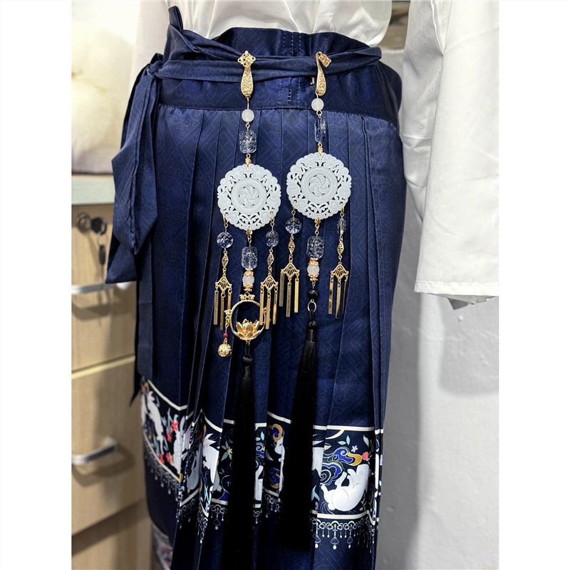 Original dark waist long tassel Hanfu no one step by step Bell tassel horse face dress cheongsam