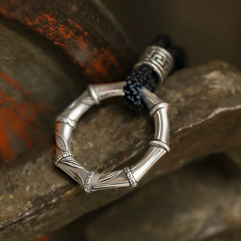 Original design "Bamboo Peace Buckle" pendant for men, trendy retro personality, men's sweater chain, black rope accessories, pendant