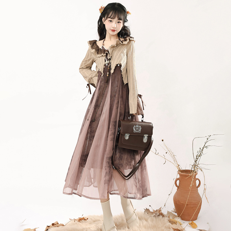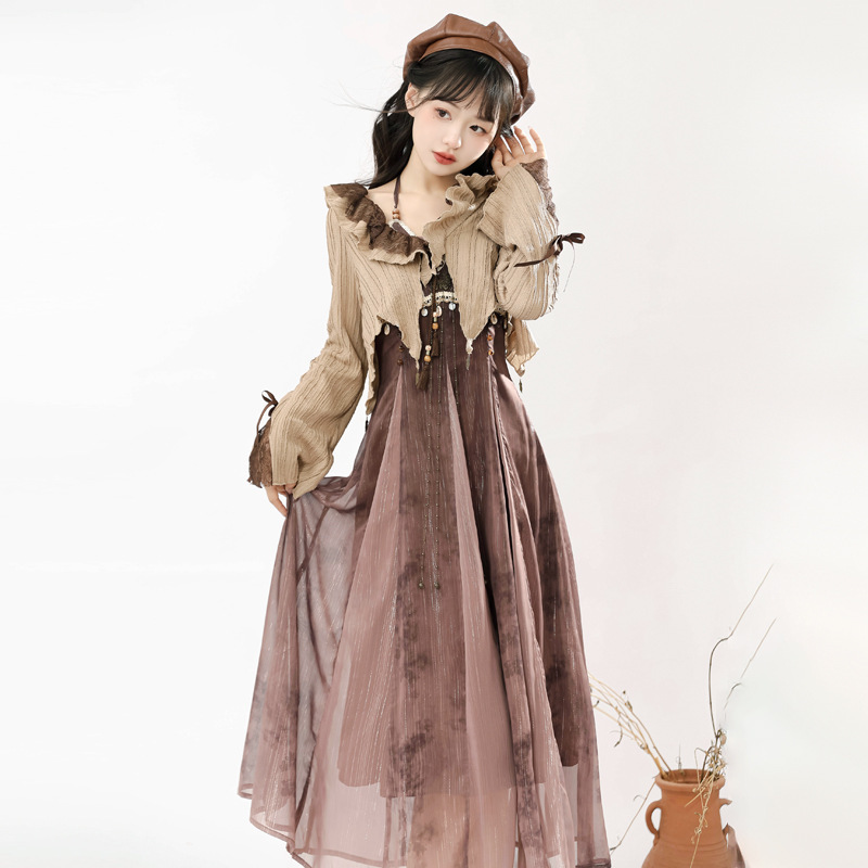 Original design desert dead butterfly Hanfu Women’s Chinese style improved Han element top dress suit 6917