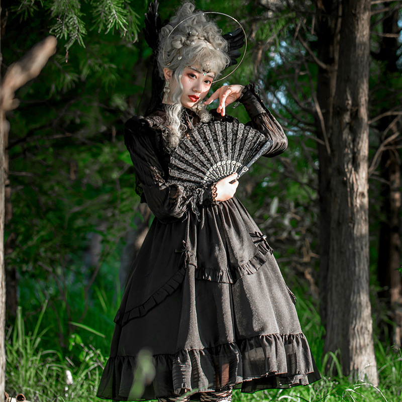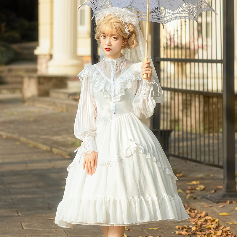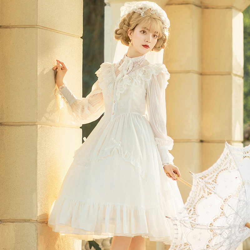 | nameOriginal | Original Design Ed Wah Collar Spring and Summer Lolita Court Retro Slimming Elegant Long Sleeve New Edition Camellia Female OP |