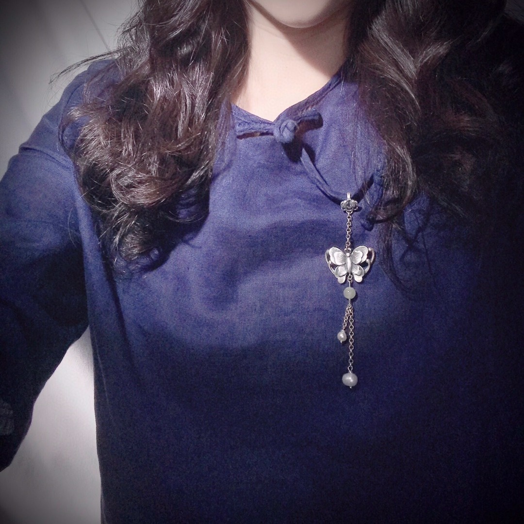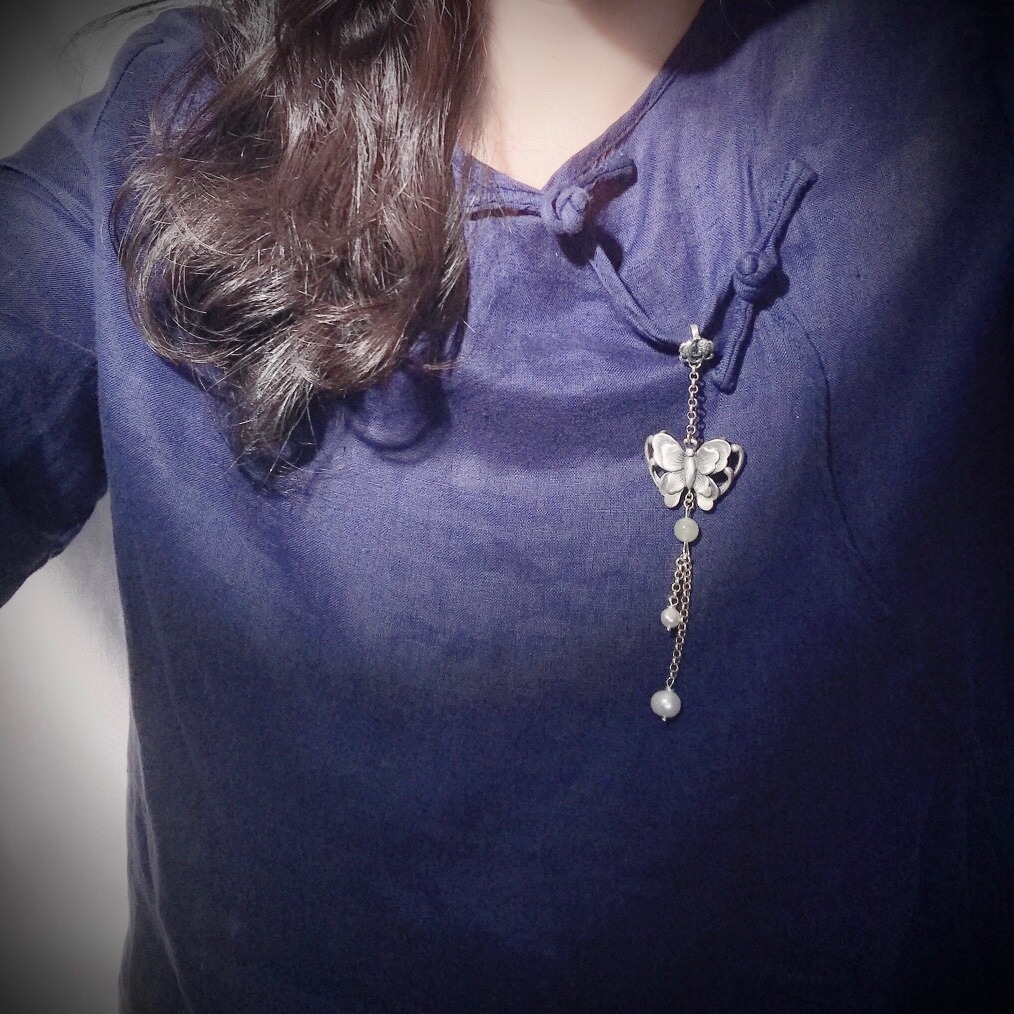 | nameOriginal | Original design handmade sterling silver butterfly Hetian jade ancient style Press placket matching ancient costume Hanfu cheongsam pearl brooch |