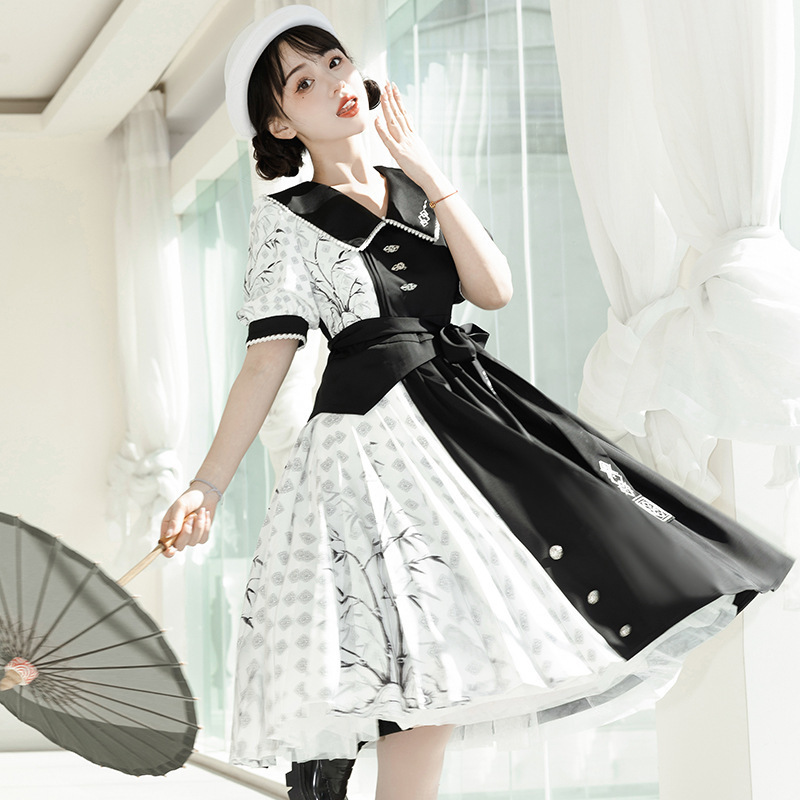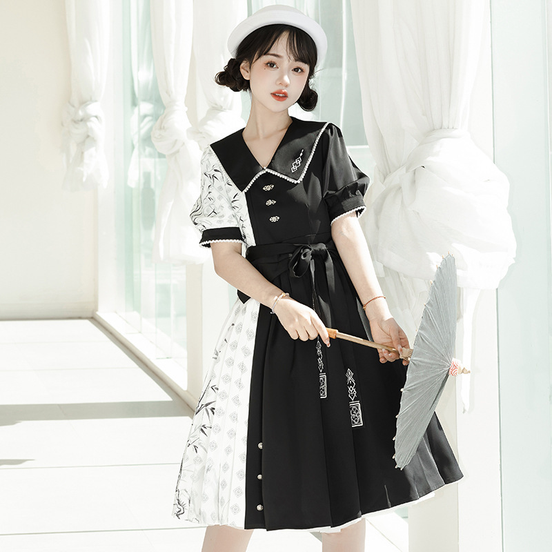 | nameOriginal | Original design ink bamboo short sleeve Chinese style improved daily Hanfu female Han Element New Chinese style dress 8542 |