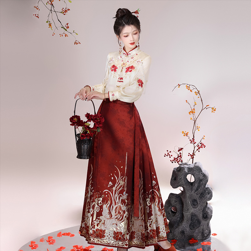 Original design Jinse Hanfu Women’s Chinese style improved Han element top vest skirt suit 8915