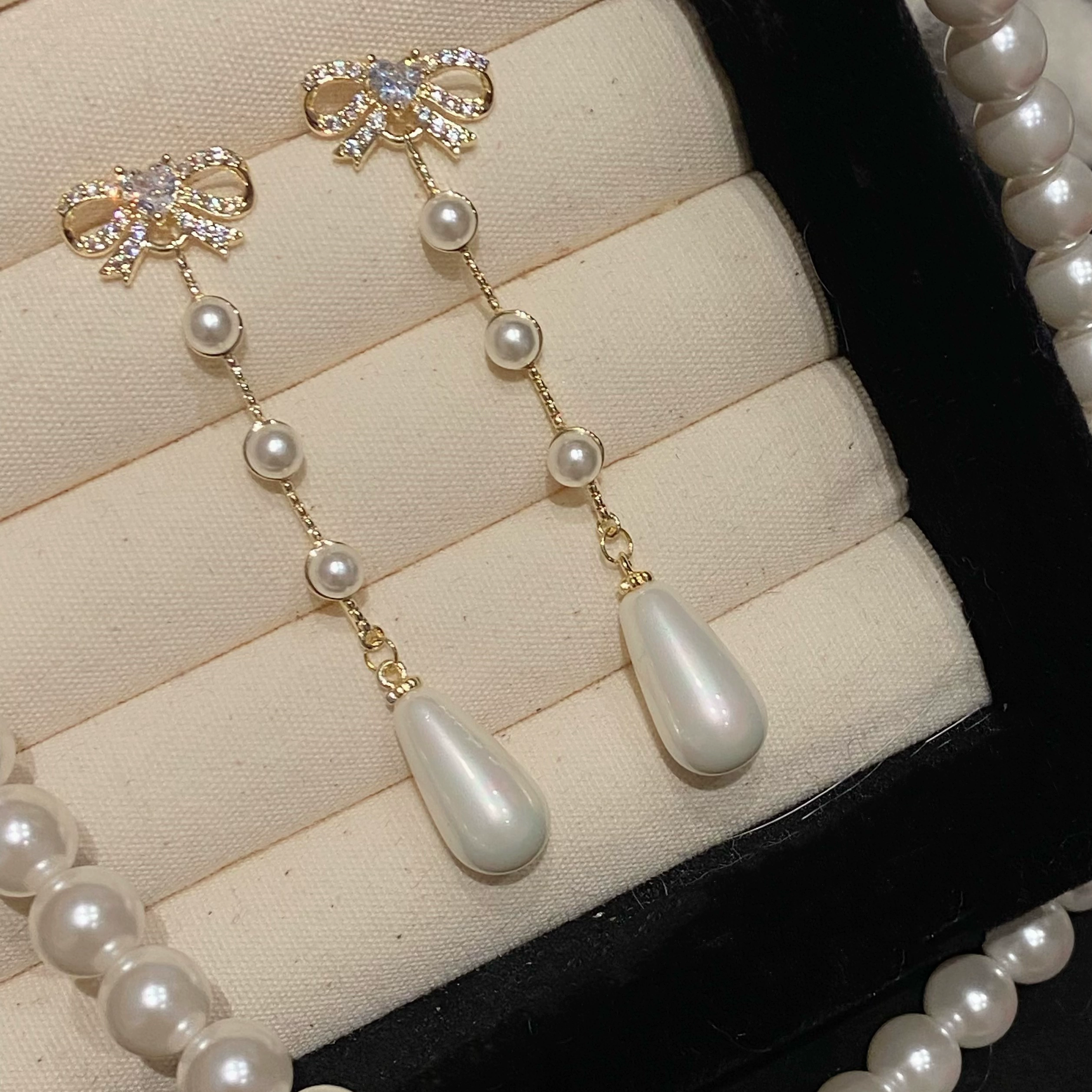 | nameOriginal | Original design long tassel ear clips with bow and pearls |