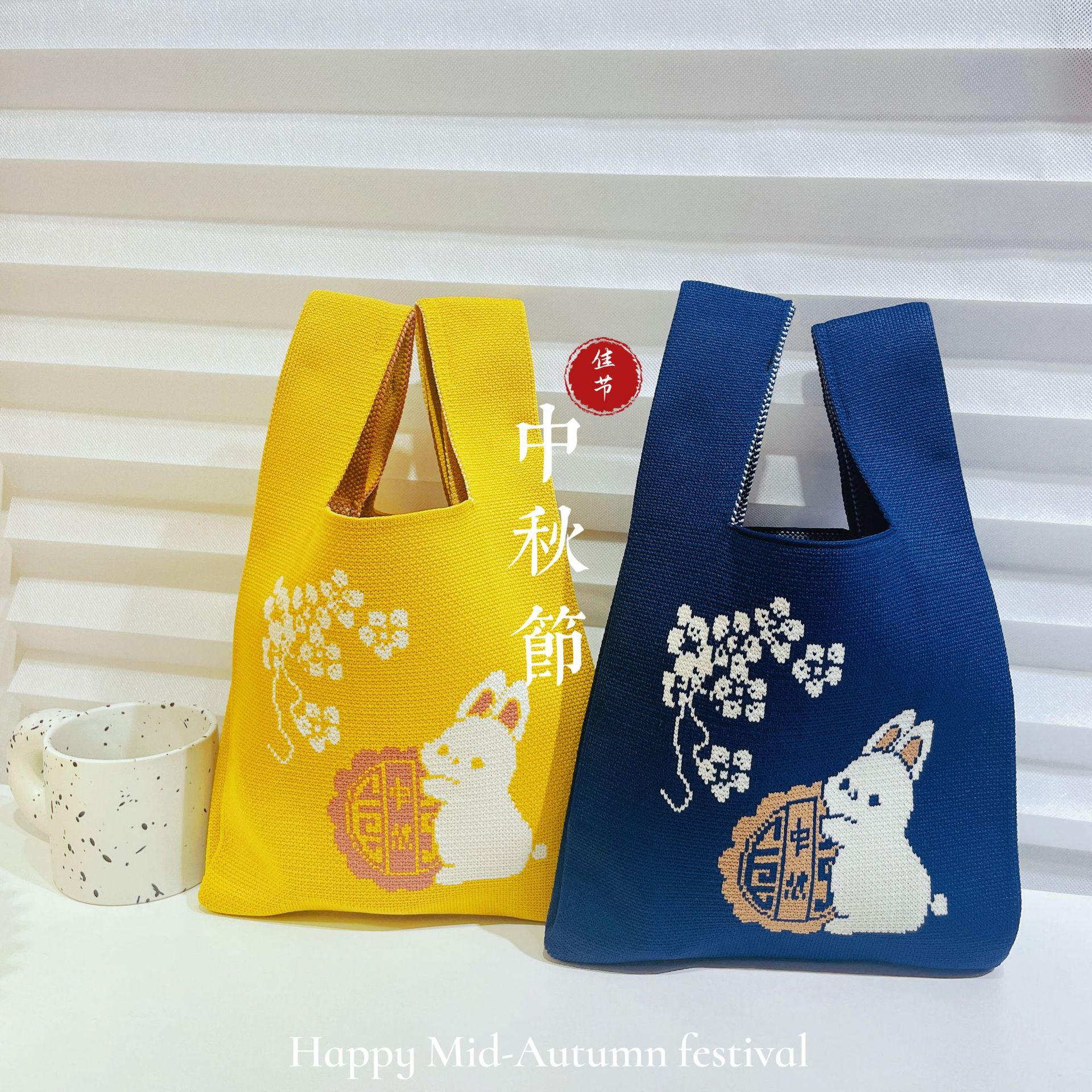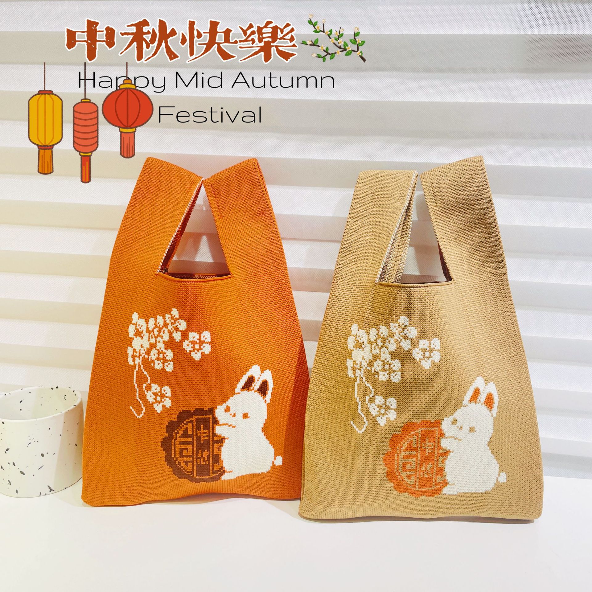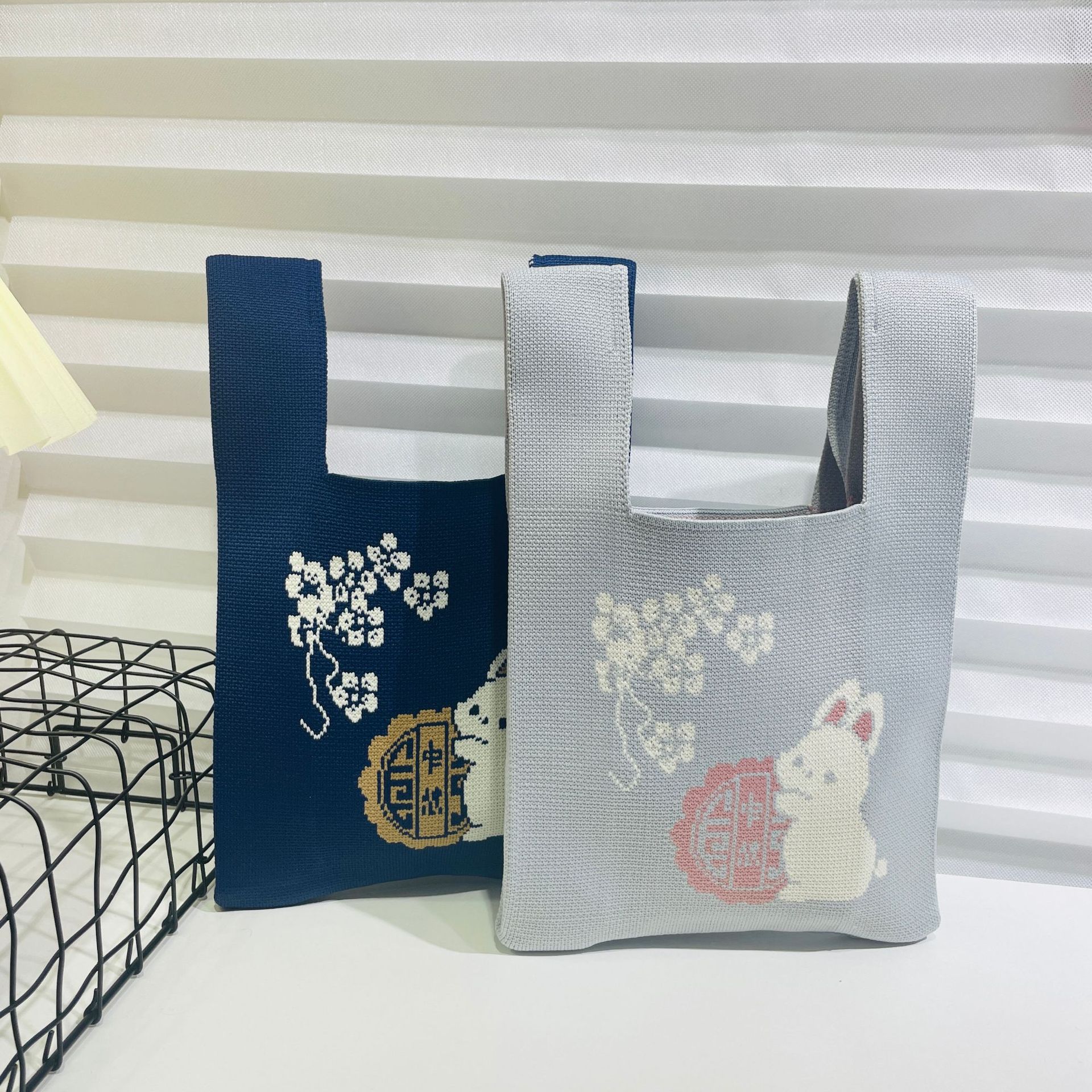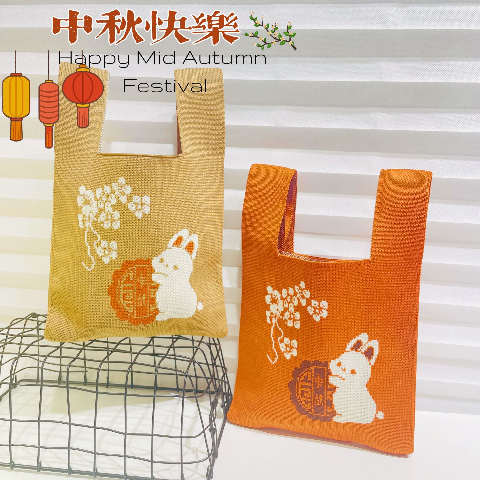 Original design Mid-Autumn Festival moon rabbit knitted hand bag gift bag handbag baking hand bag