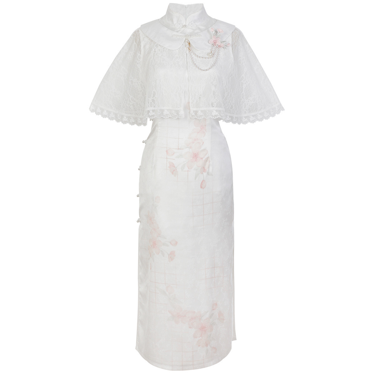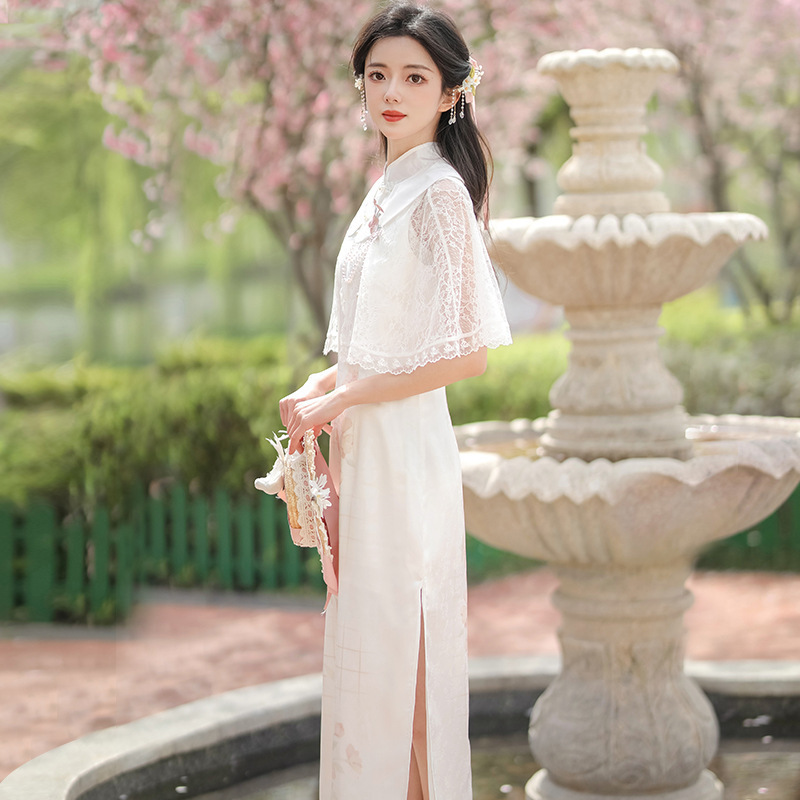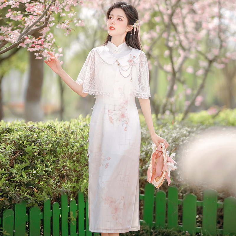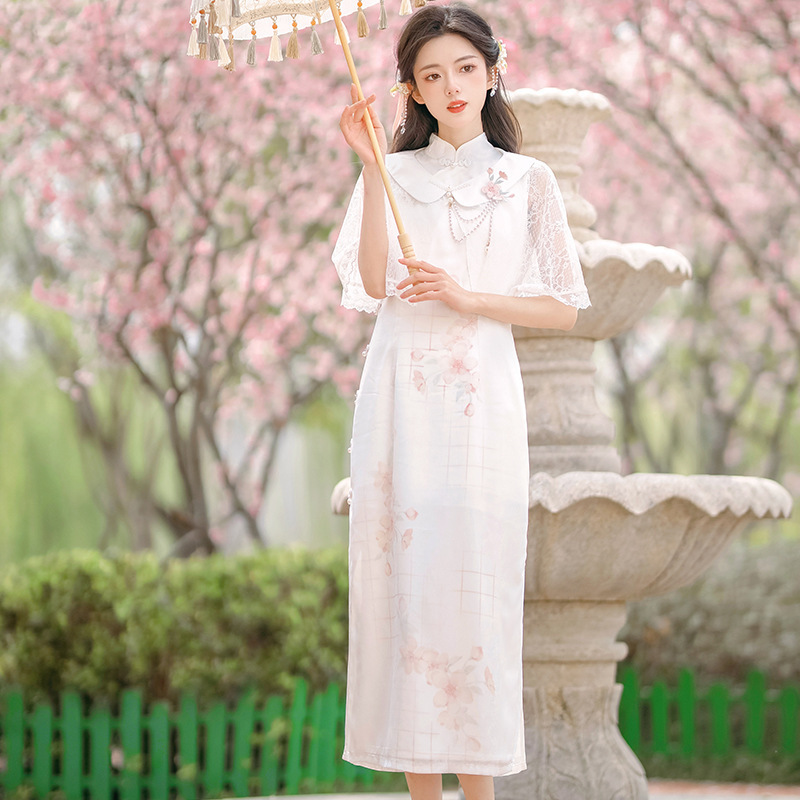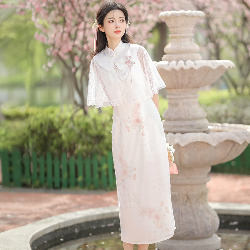 Original design new style face peach flower Chinese style retro Daily Han element improved cheongsam suit 8631