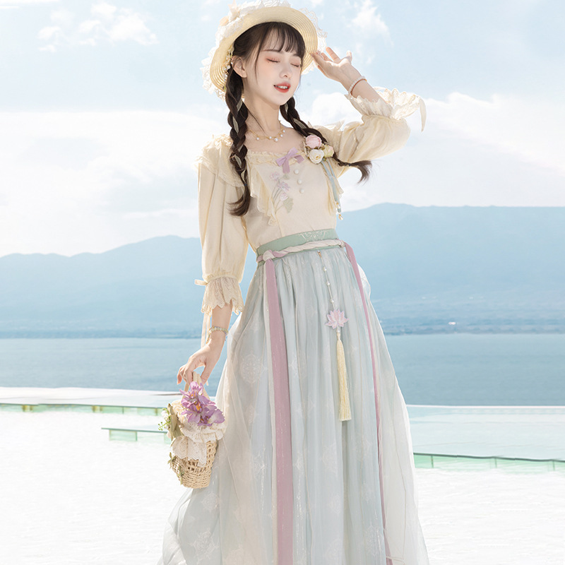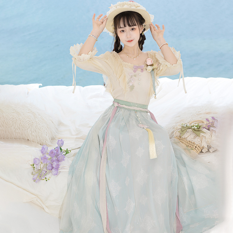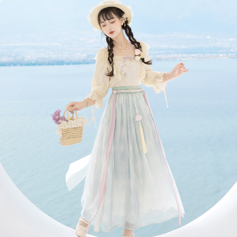Original design Qingshui summer Hanfu women's Han element waist skirt Chinese style top dress suit 8568