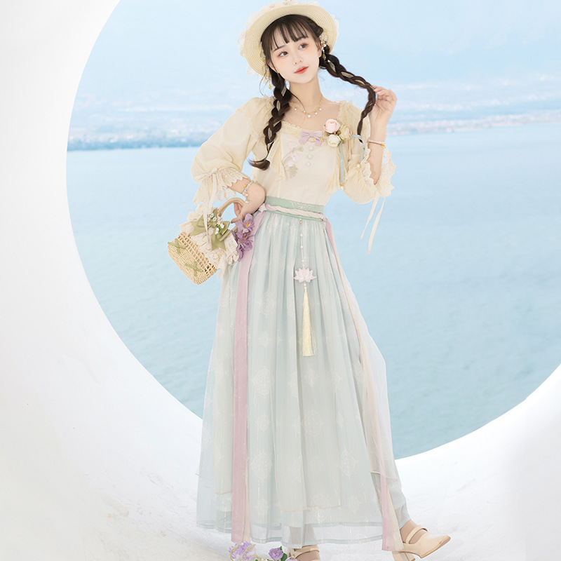 Original design Qingshui summer Hanfu women’s Han element waist skirt Chinese style top dress suit 8568