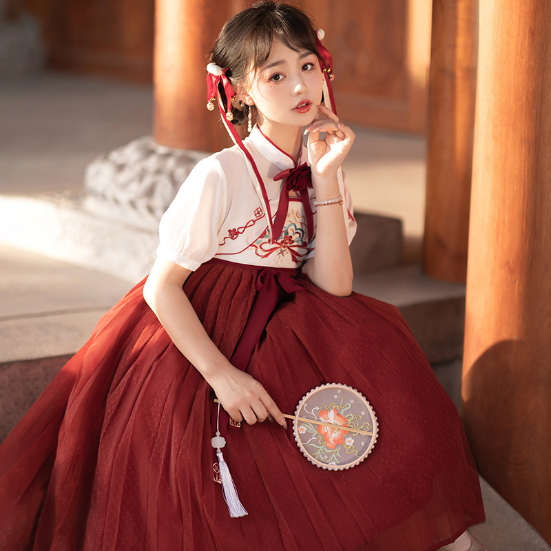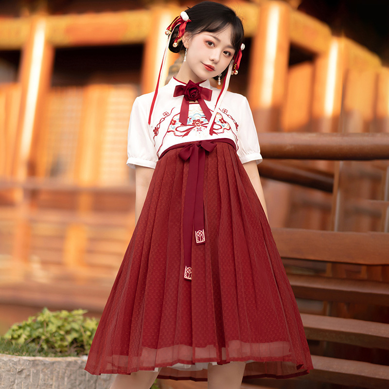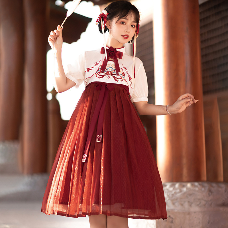 Original Design Red Twill Chinese Style Retro Daily Improved Chinese Element Outer Skirt Two-piece 8383