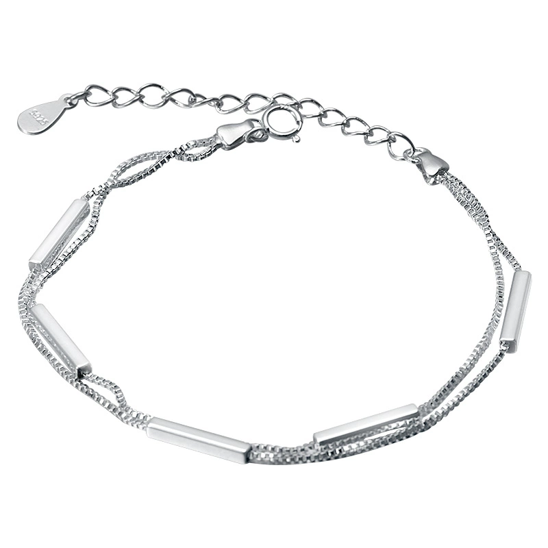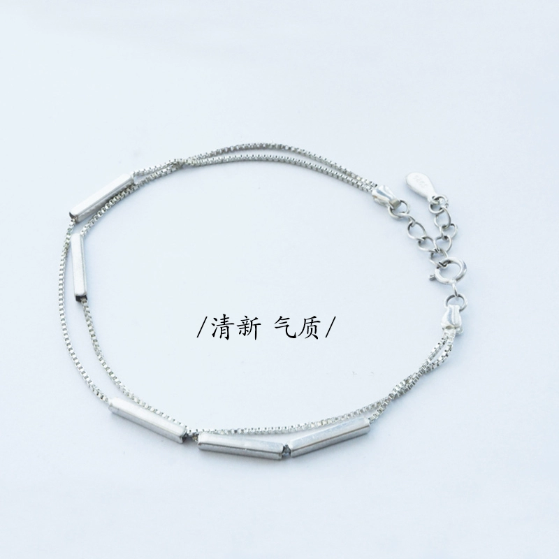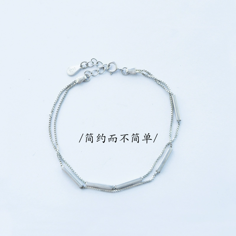 Original design s925 pure silver literary and Korean version of simple one note stick -shaped double -layer bracelet women’s fine hand shadow jewelry