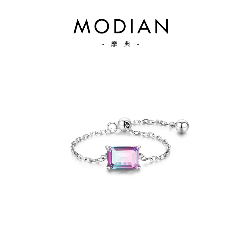 Original design s925 sterling silver rectangular imitation watermelon tourmaline chain ring women's niche design ring bracelet