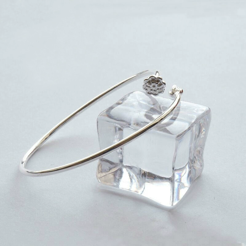 | nameOriginal | Original design S925 sterling silver retro lotus lotus pod plain silver classic open bracelet women's bracelet jewelry |