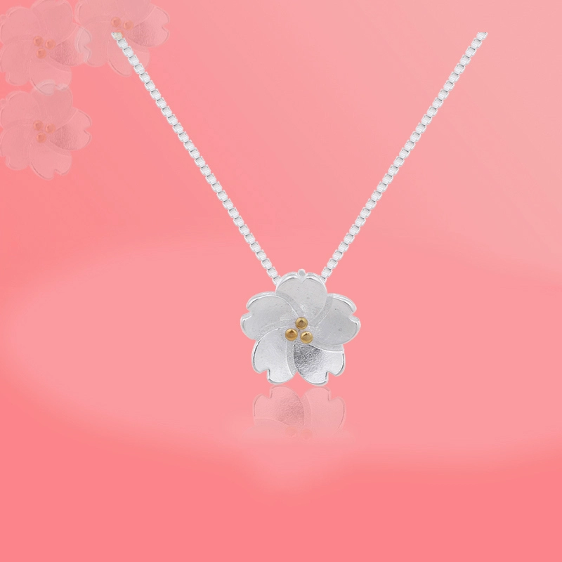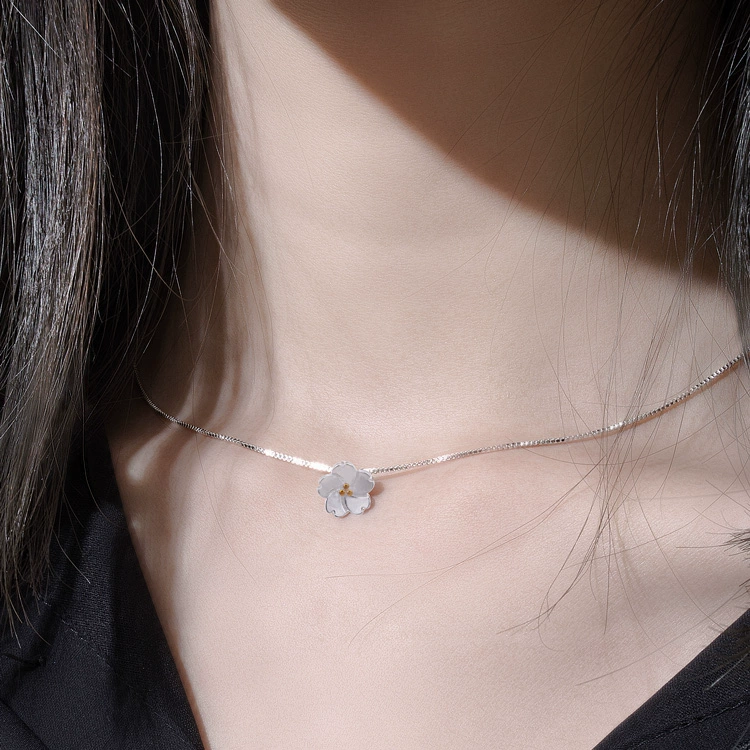 | nameOriginal | Original design simple S925 sterling silver cherry blossom clavicle short necklace literary girl style versatile pendant forest style |