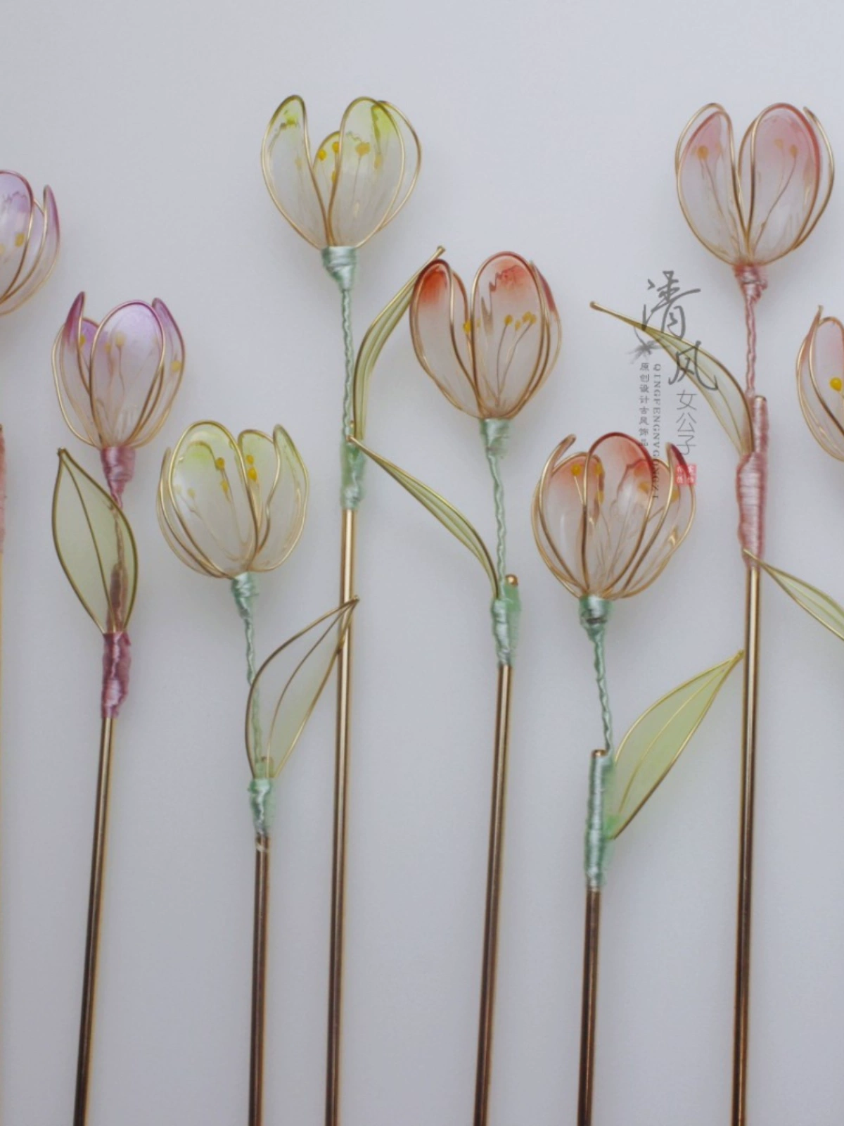 Original design [Tulip] Flower Liquid Pink Hairpin Ancient Style Hanfu Headdress Hairpin Qingfeng Female Young Master