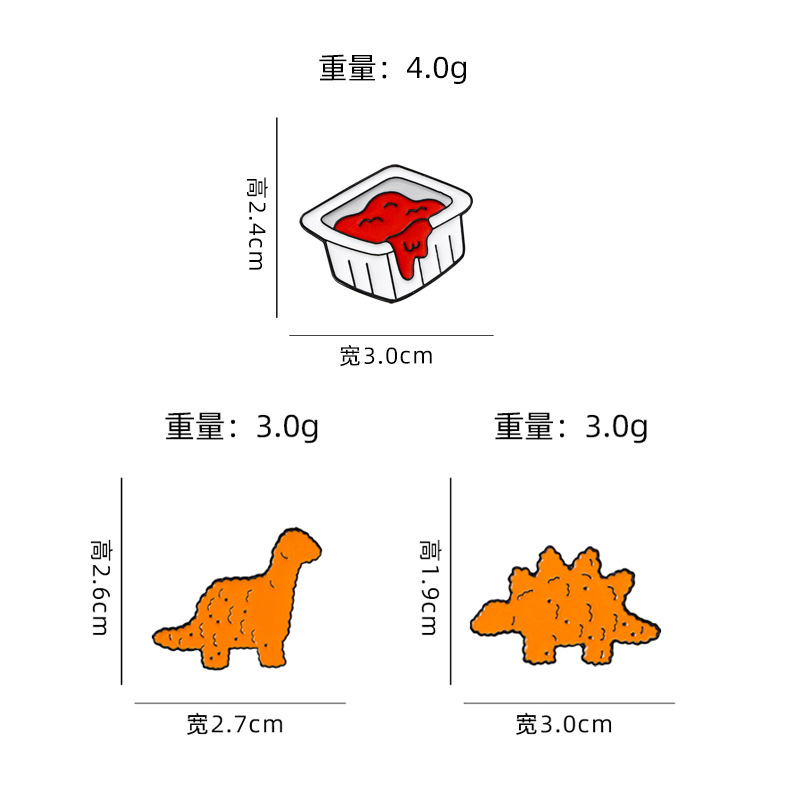 | nameOriginal | Original Drop Oil Alloy Brooch Cartoon Brontosaurus Stegosaurus Dinosaur Cookies Tomato Sauce Cute Clothes Decorative Buckle Badge |