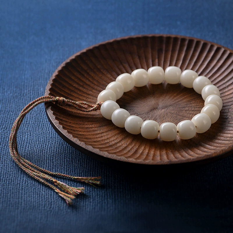 Original ecological white jade bodhi root old-type bead barrel bead bracelet hand-held men's and women's bracelet cultural play beads single circle original seed