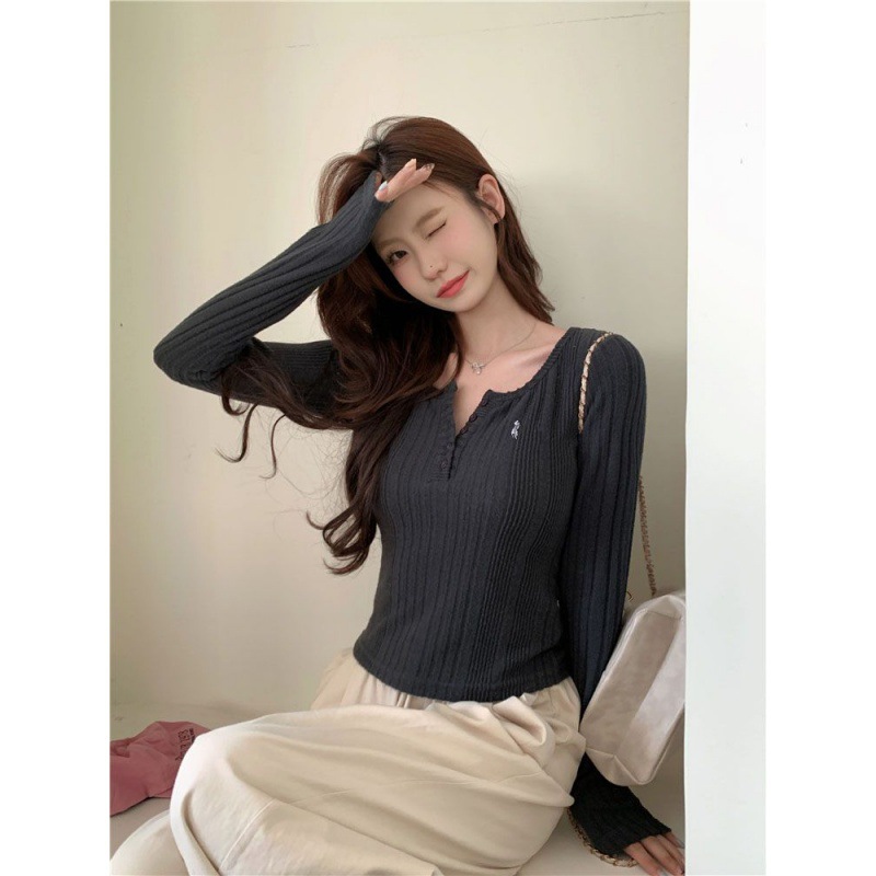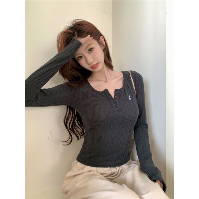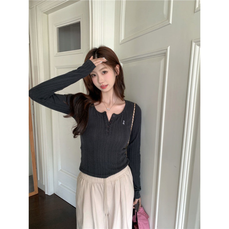 | nameOriginal | [Original Fabric] Embroidered Round Neck Long Sleeve Base Shirt T-shirt Women's Inner Slim-fit Short Top |
