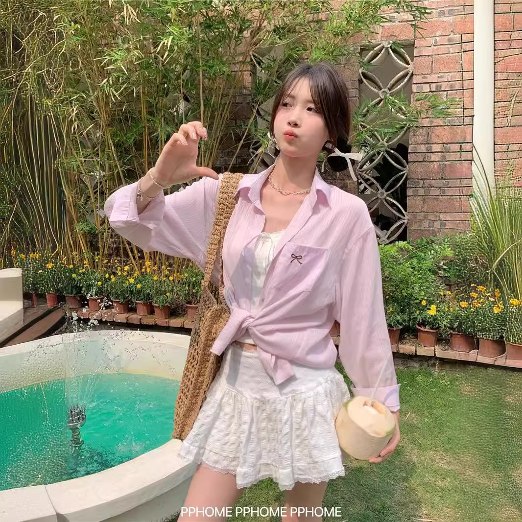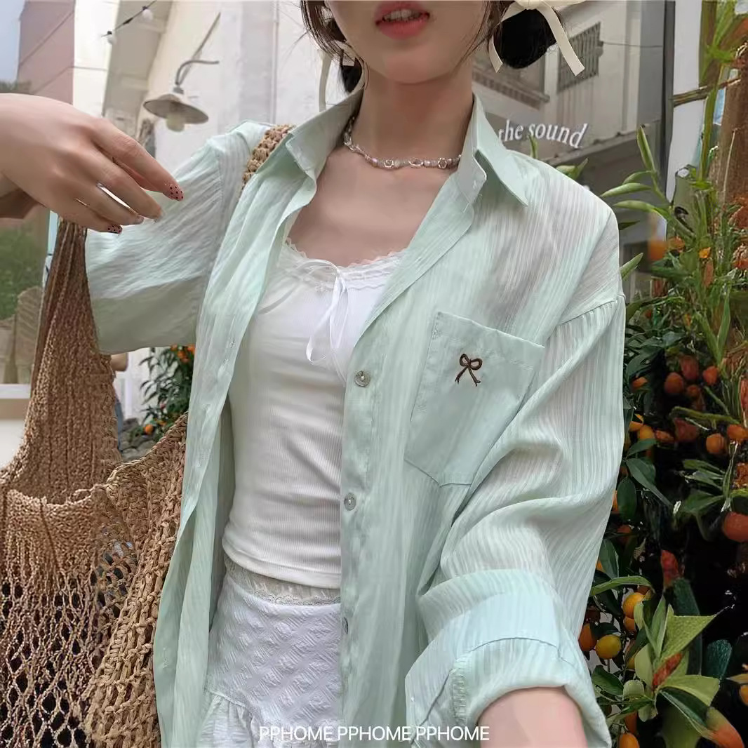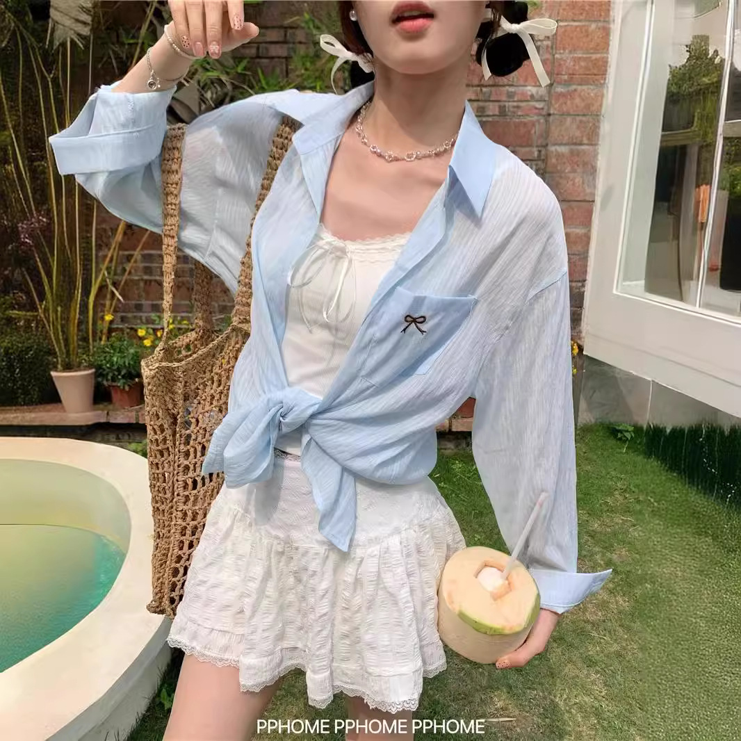 | nameOriginal | [Original fabric] thin sunscreen shirt summer lazy wind bow embroidery micro through long sleeve breathable shirt |