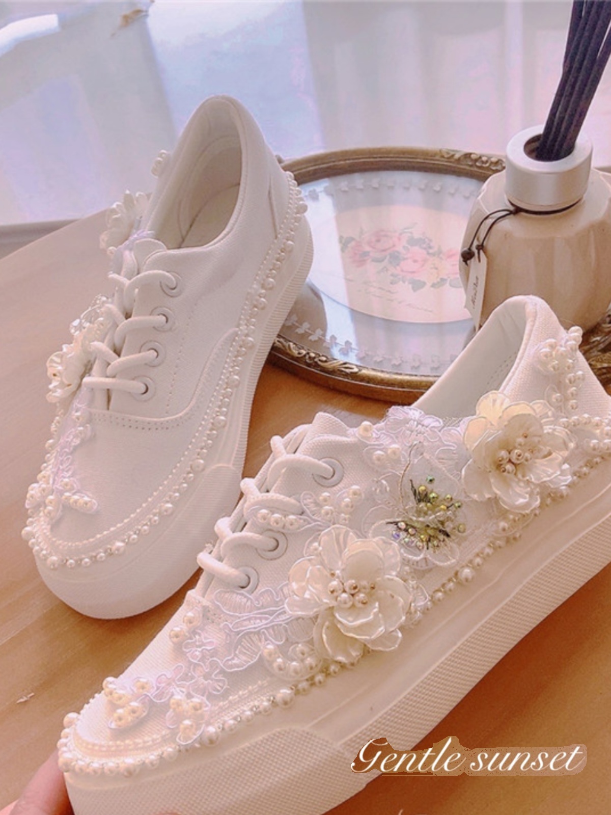 | nameOriginal | Original fantasy pearl fairy lace low-top white shoes |