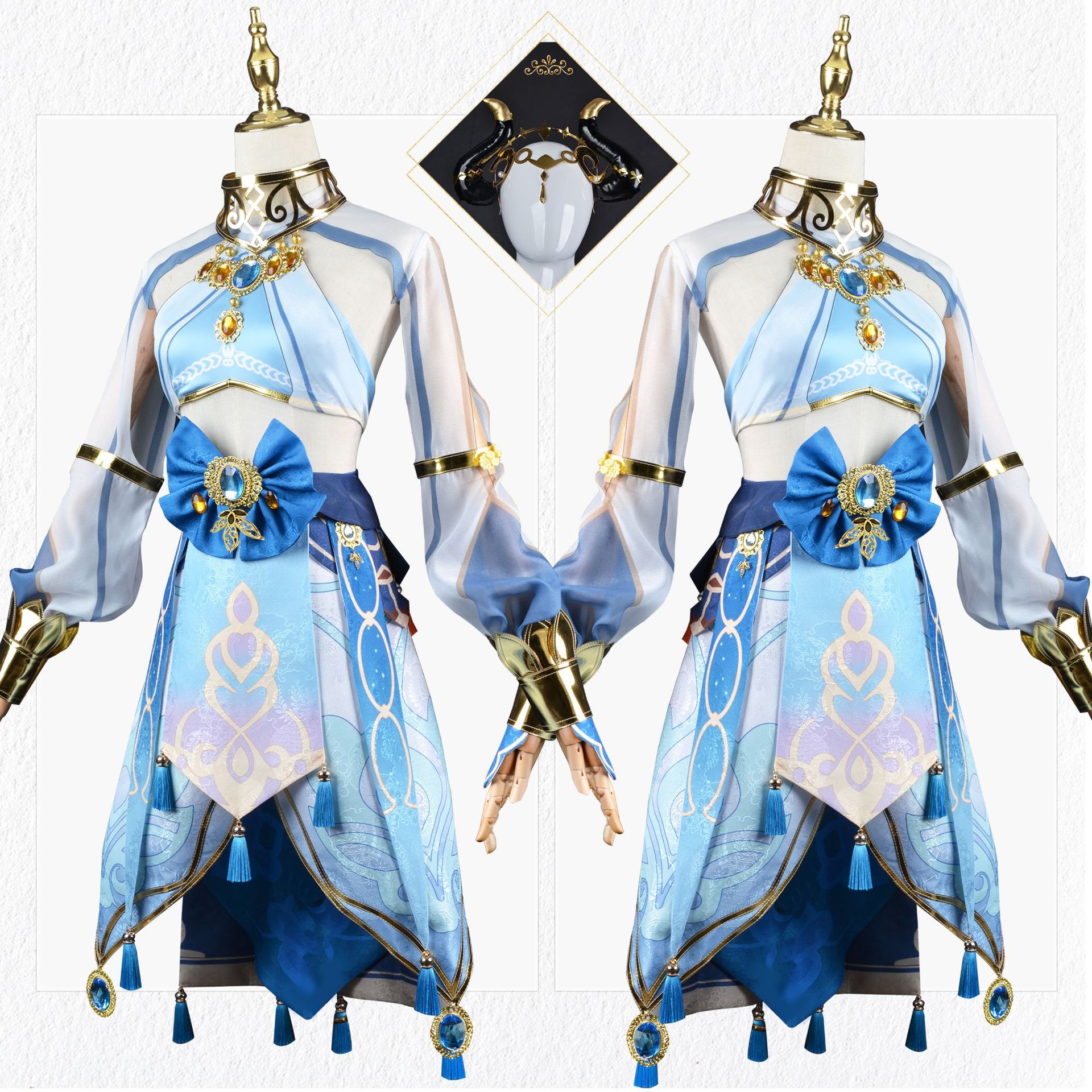 | nameOriginal | Original God game cos clothing Nelu cos blue clothing female Western region dancer suit full set cosplay clothing full set |
