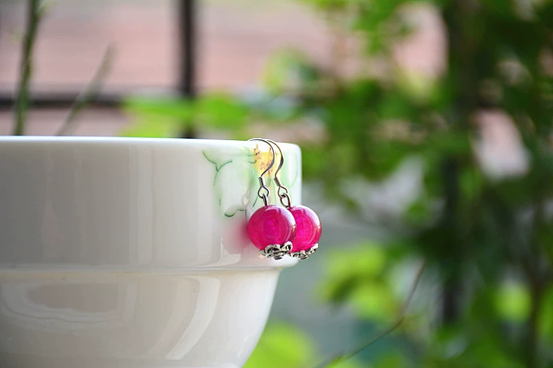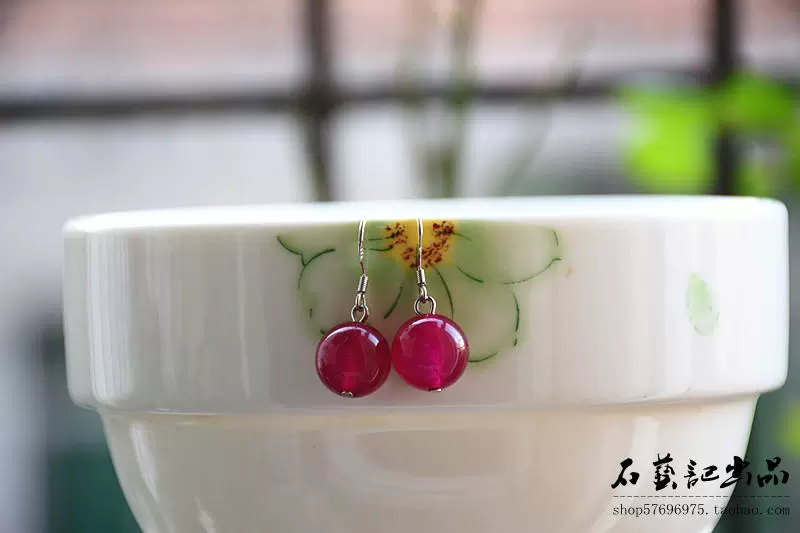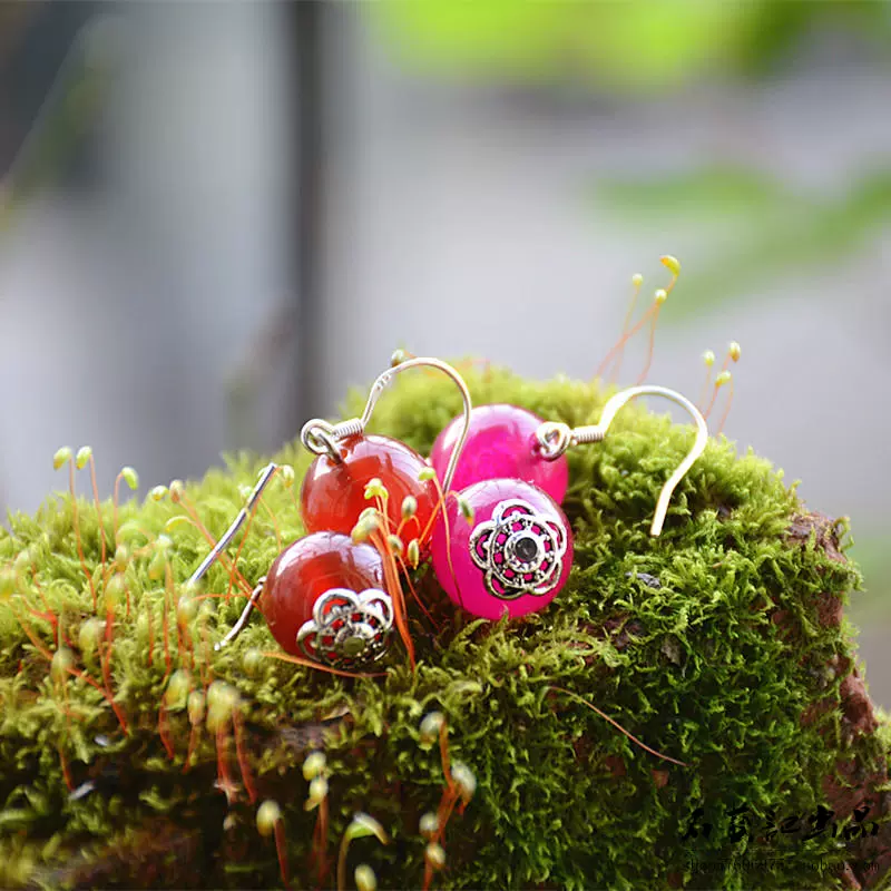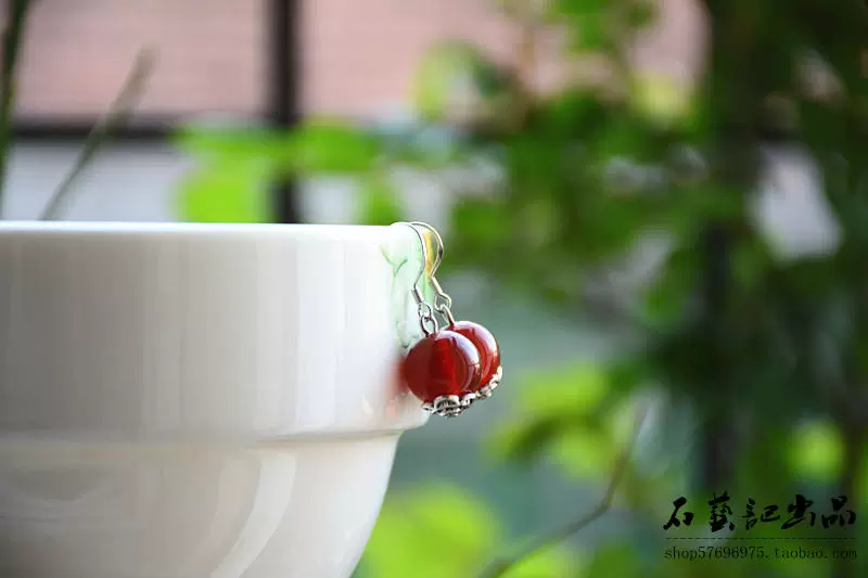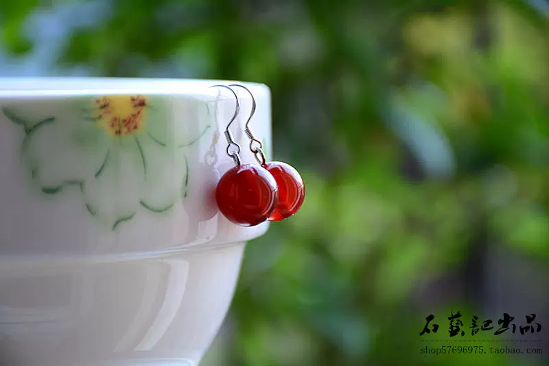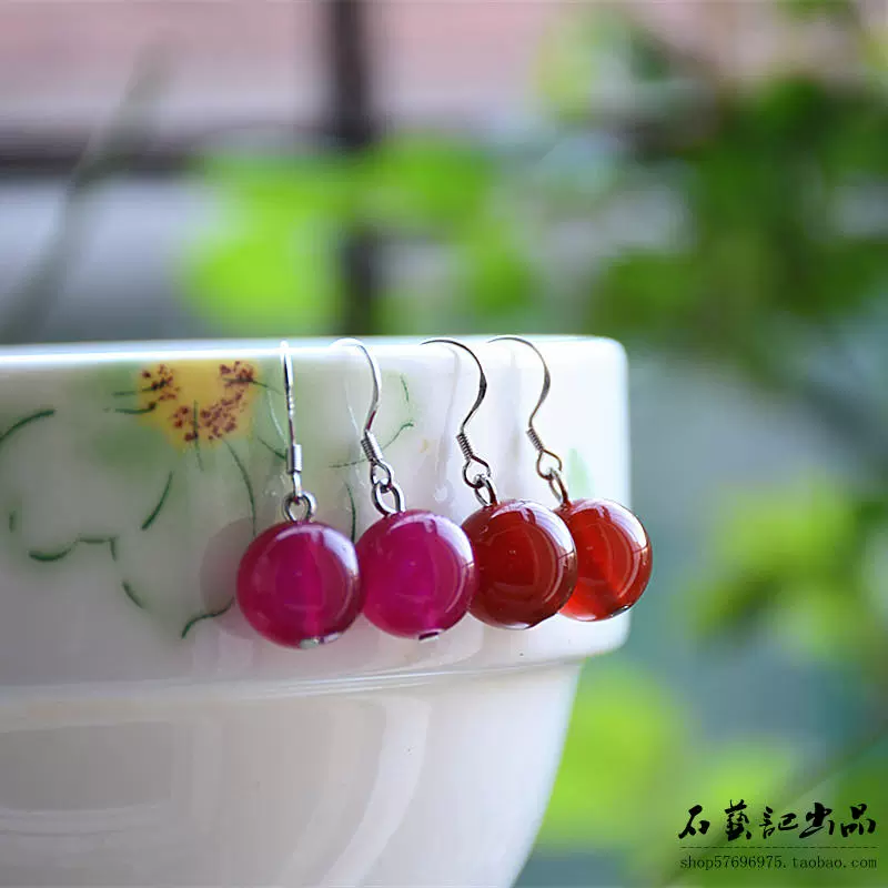 | nameOriginal | Original handmade 925 silver earrings Korean water drop earrings red agate simple temperament women's retro round bead earrings |