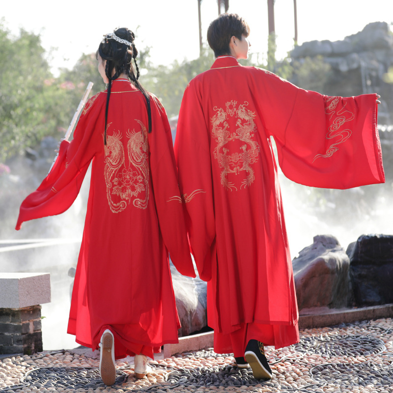 | nameOriginal | Original Hanfu men's and women's red wedding clothes couple's Dragon and Phoenix heavy industry embroidered Chinese red wedding clothes wide sleeve shirt autumn and winter |